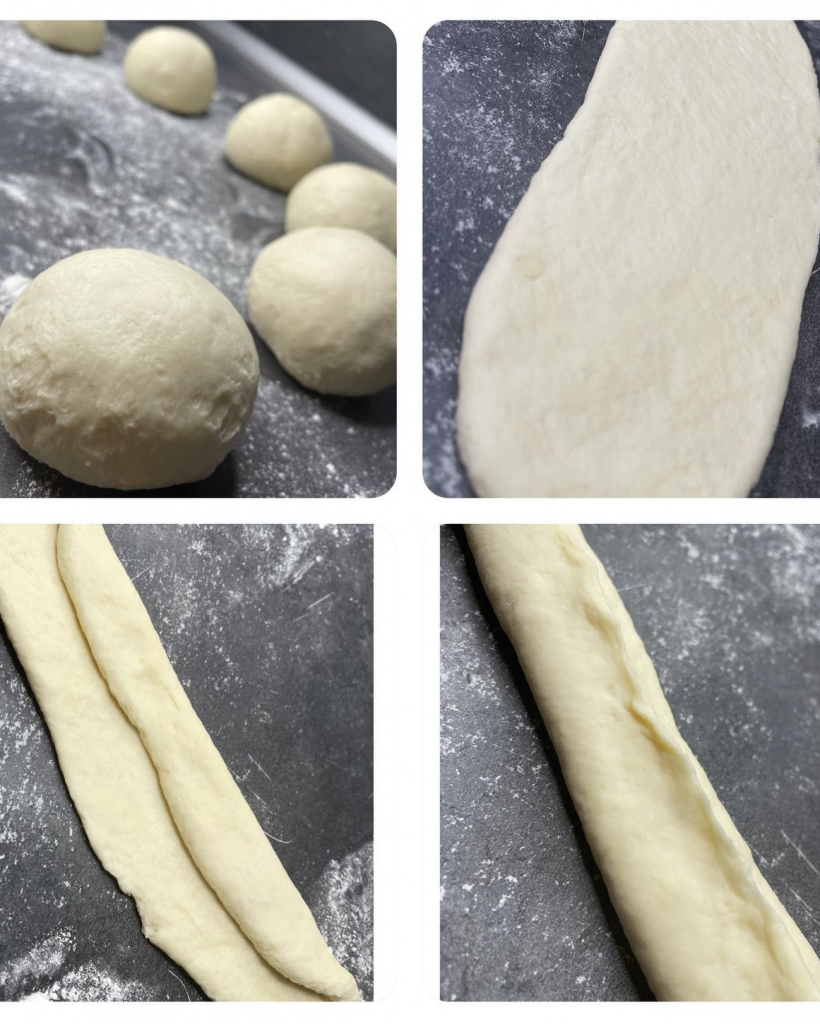 Après la pousse diviser la pâte en 8 boules et commencer à façonner.