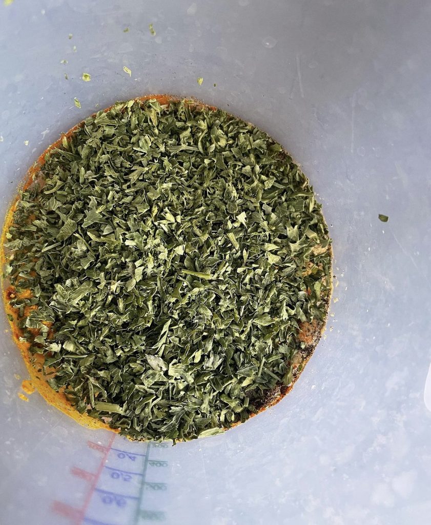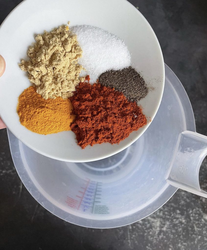 – Dans 300g d’eau mettre sel, poivre, gingembre, paprika, persil et curcuma