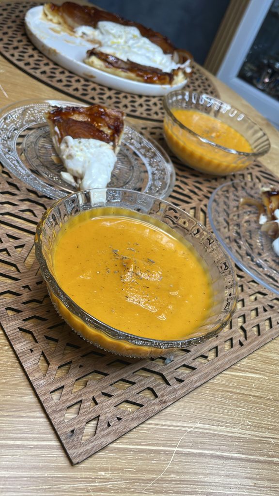 VELOUTÉ DE BUTTERNUT & TARTE TATIN AU OIGNON ET BURRATA